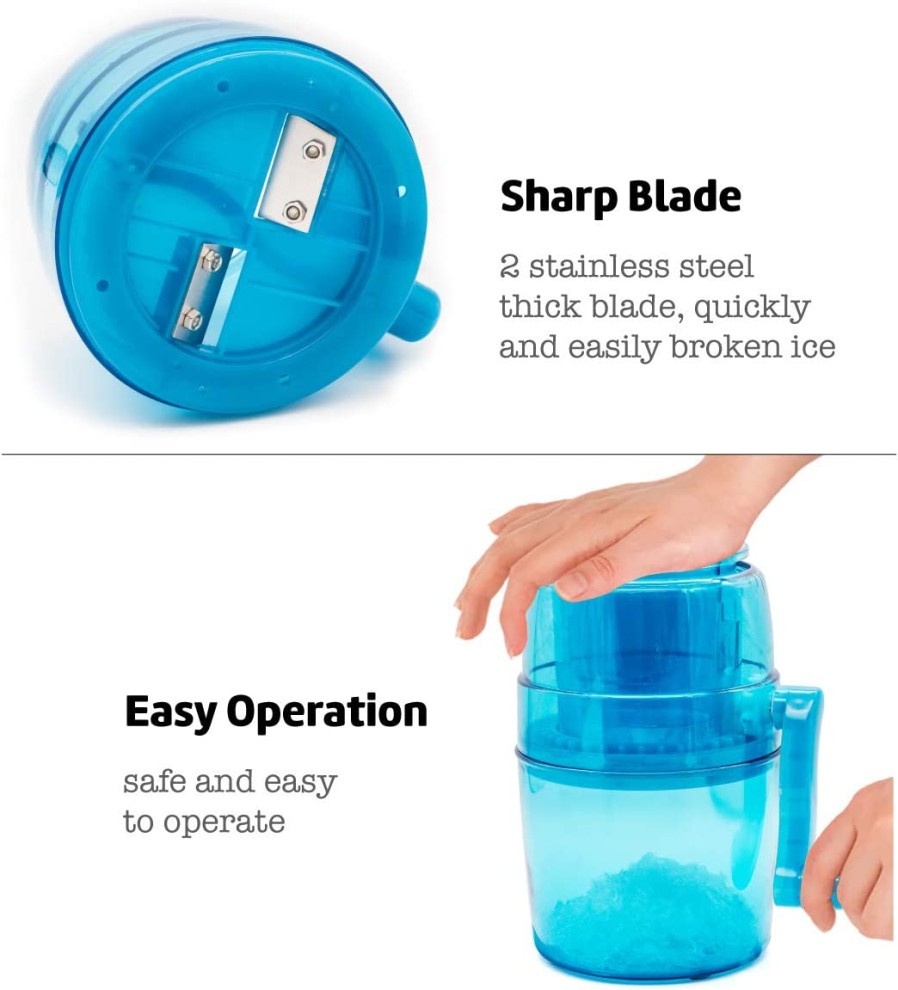 استمتع بألذ المشروبات والحلويات المثلجة في أي وقت مع آلة تكسير الثلج اليدوية المصنوعة من مواد غذائية آمنة وصديقة للبيئة وخالية تمامًا من أي روائح كريهة.