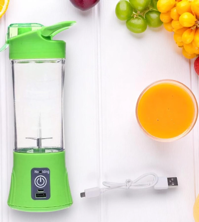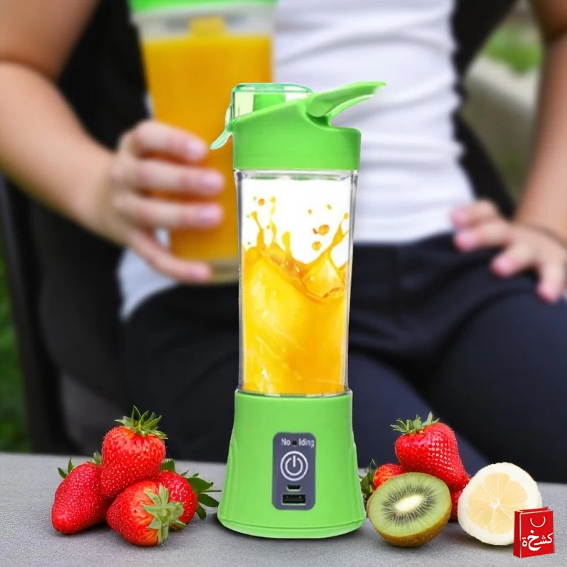 🥤 خلاط عصير محمول – قابل لإعادة الشحن عبر USB – اخضر – 400 مل