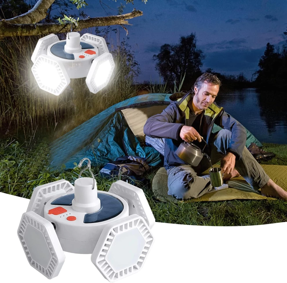 🏕🌞 فانوس تخييم يعمل بالطاقة الشمسية – قابل للشحن USB – بطارية 2400mAh – مقاوم للماء IP44