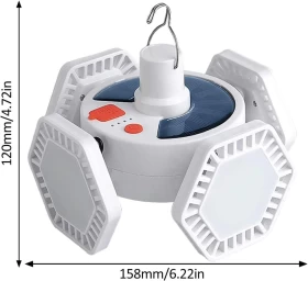 مزود ببطارية مدمجة سعة 2400mAh مع شحن بالطاقة الشمسية وUSB — يوفر إضاءة قوية ومناسبة للاستخدام الخارجي.