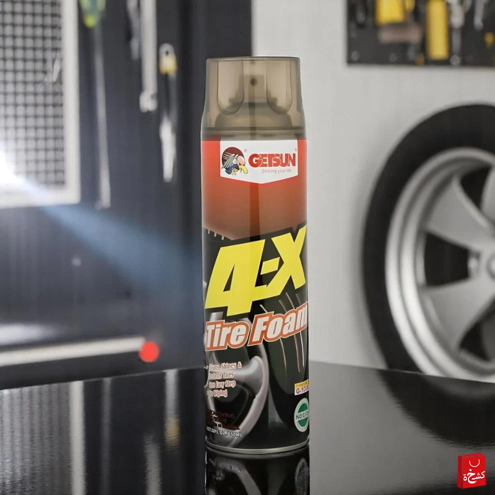 🛞✨ بخاخ وفوم 4-X لتلميع وتغليف الإطارات – 650 مل