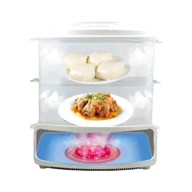 • 🔄 تصميم متعدد الطبقات – 3 صواني قابلة للتكديس للحوم والخضار والأرز