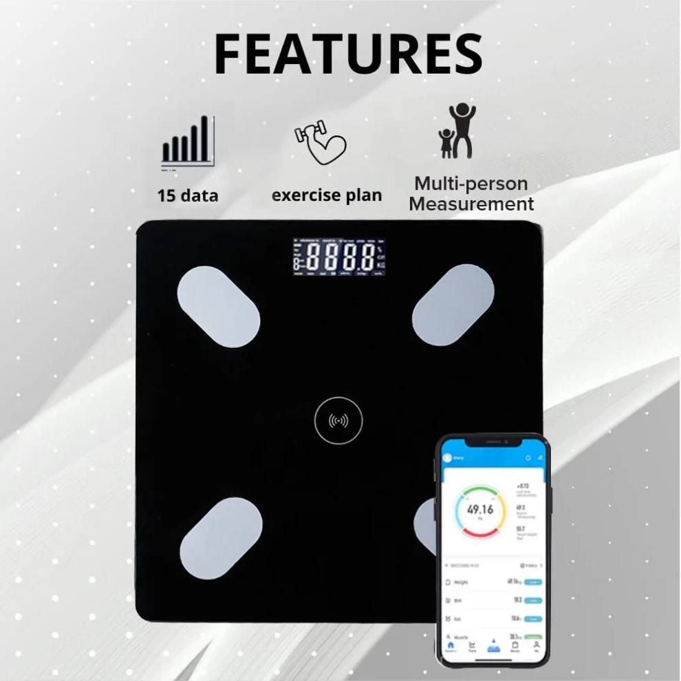 ميزان ذكي رقمي بلوتوث لتحليل دهون الجسم مع تطبيق