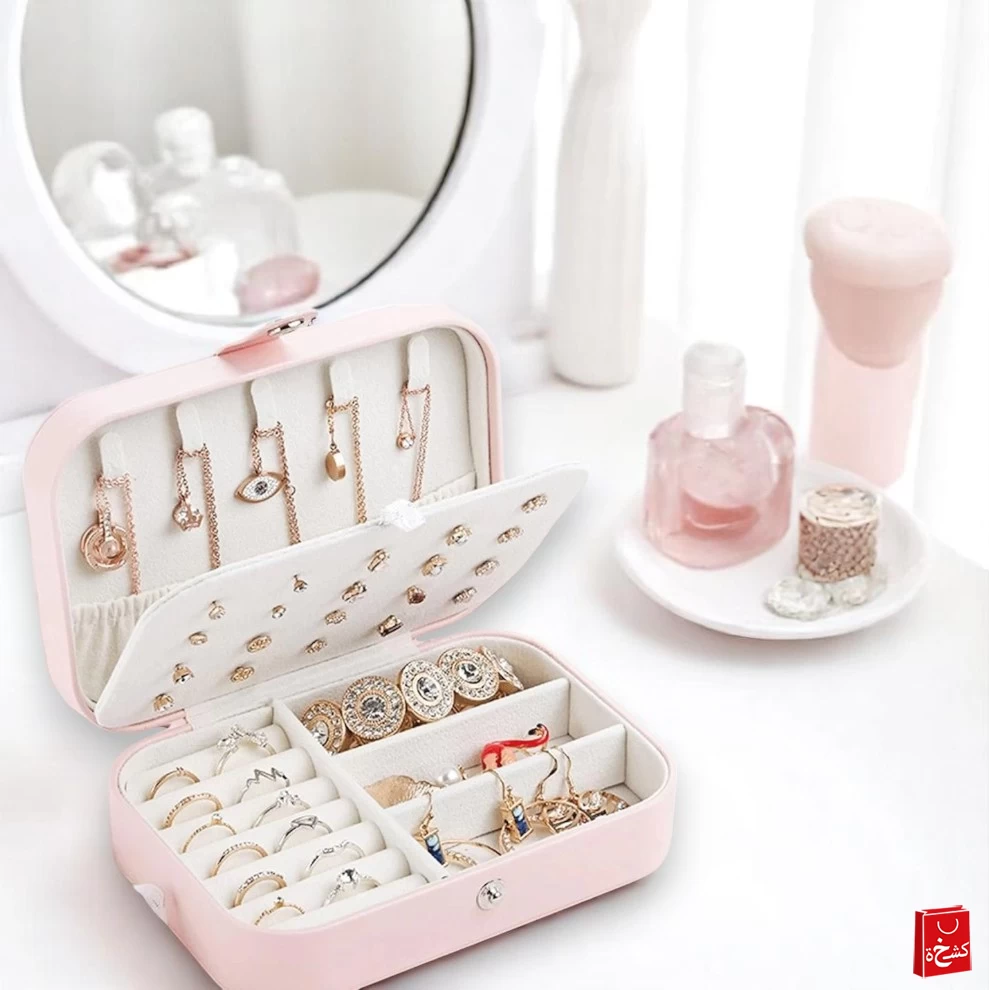 احفظي مجوهراتكِ بأمان وأناقة أينما كنتِ. علبة المجوهرات هذه تأتي بطبقتين وبتصميم مدمج يناسب الحقيبة أو شنطة السفر، وتُحافظ على خواتمك، قلاداتك، أقراطك، وأكسسواراتكِ من التشابك أو التلف. 🎀👜