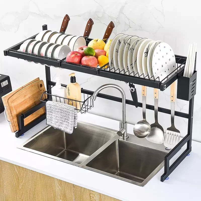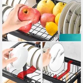 🧼 منظم تجفيف الصحون فوق الحوض – رف مزدوج لتوفير المساحة في المطبخ