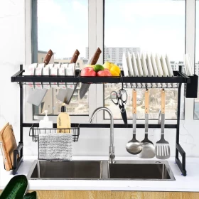 خلّ مطبخك دايمًا نظيف ومرتب مع رف تجفيف الصحون المزدوج المصمم ليُوضع فوق الحوض مباشرة! 🧽 يوفر هذا الرف الحل المثالي لتجفيف الصحون والأطباق والأدوات بطريقة ذكية ويوفر مساحة قيمة على سطح المطبخ. مصنوع من الفولاذ المقاوم للصدأ ليتحمّل الاستخدام اليومي ويمنع الصدأ 💪. مثالي للمطابخ الصغيرة أو لأي شخص يبي يحافظ على سطح المطبخ خالي من الفوضى! 🙌