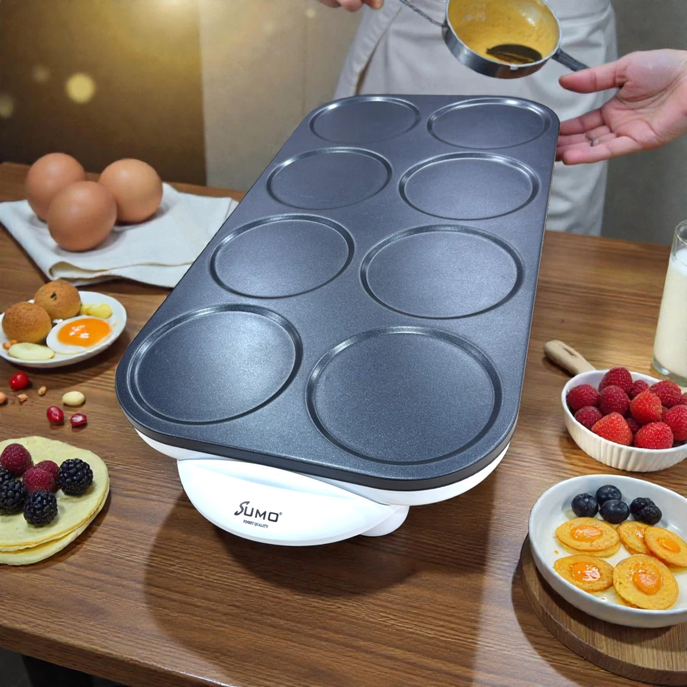 🥞🍳 صانعة الأومليت والبنك كيك متعددة الوظائف من Sumo – قوة 1350 واط | 8 صحون غير لاصقة