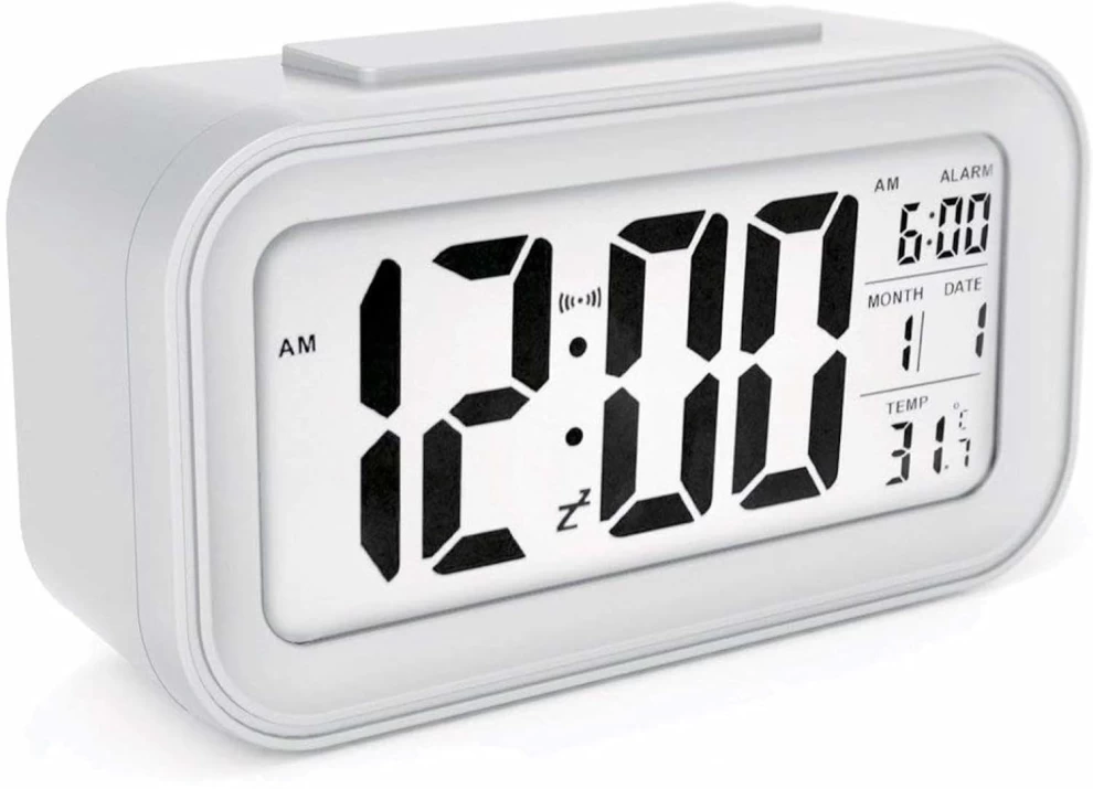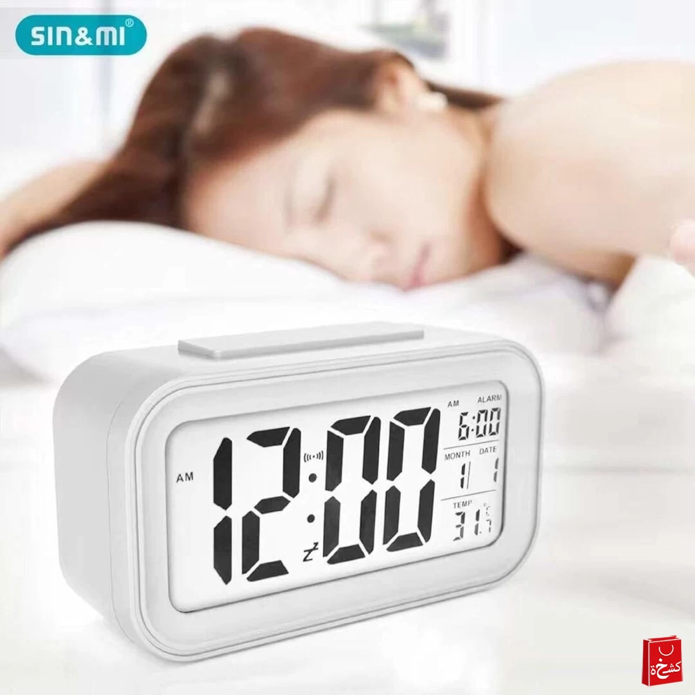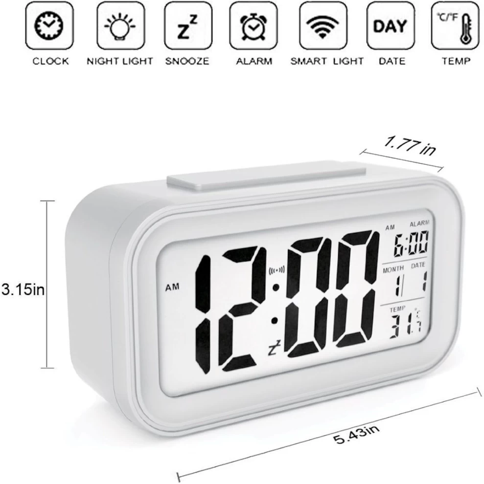 ساعة منبه رقمية مع إضاءة ذكية وشاشة عرض درجة حرارة