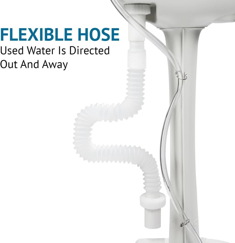 خرطوم لتصريف المياه المستخدمة قابل للتمديد بطول (31-80) سم، يمكن وضعه في خزان منفصل لإعادة استخدامها لاحقا في التنظيف أو السقاية.