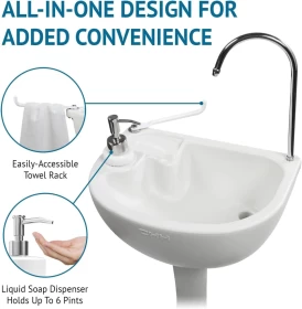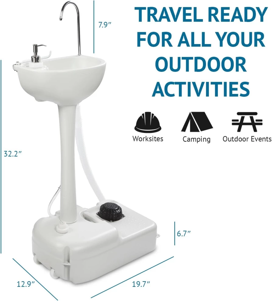 استمتع بالنظافة في الهواء الطلق مع المغسلة المتنقلة، المزودة بخزان مياه 17 لتر، مضخة يدوية بالقدم، وصنبور مدمج، مثالية للتخييم، الرحلات، ومواقع العمل. تحتوي على موزع صابون سائل 3 لتر، حامل مناديل، وخرطوم تصريف مرن، مع تصميم متين وخفيف الوزن بعجلات لسهولة النقل.
