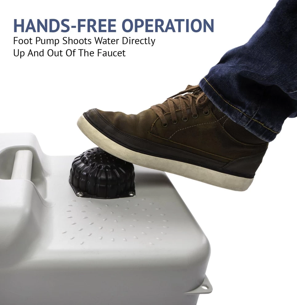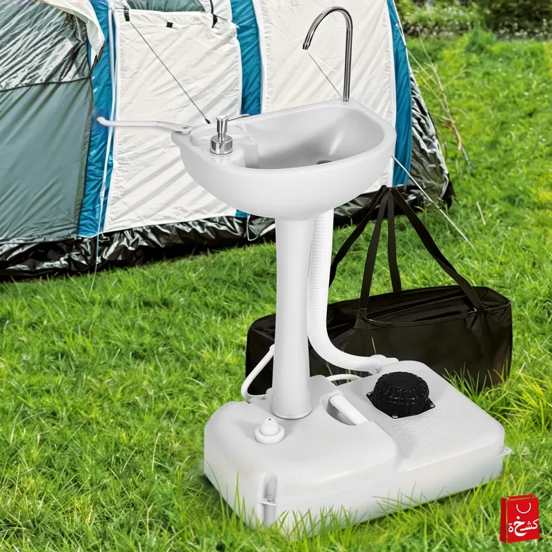 مغسلة متنقلة للتخييم والرحلات مزودة بدواسة لضخ المياه وخزان 17 لتر