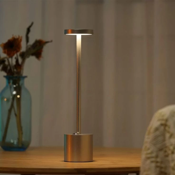 أضف لمسة من الأناقة والعملية لأي مكان مع مصباح الطاولة LED اللاسلكي. يعمل باللمس، ويتميز بثلاثة ألوان مختلفة ولمسة تصميم عصرية مناسبة للمنزل أو المطاعم أو الجلسات الخارجية.