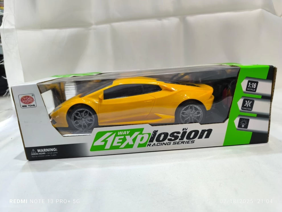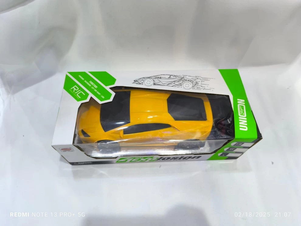 انطلق بأقصى سرعة مع سيارة لوشن السباقية ذات اللون الأصفر المميز! تصميم رياضي وتحكم دقيق يجعلها ممتعة وآمنة للأطفال.