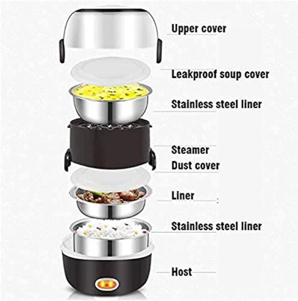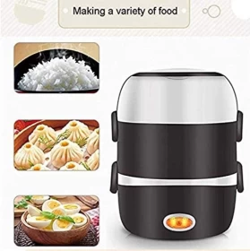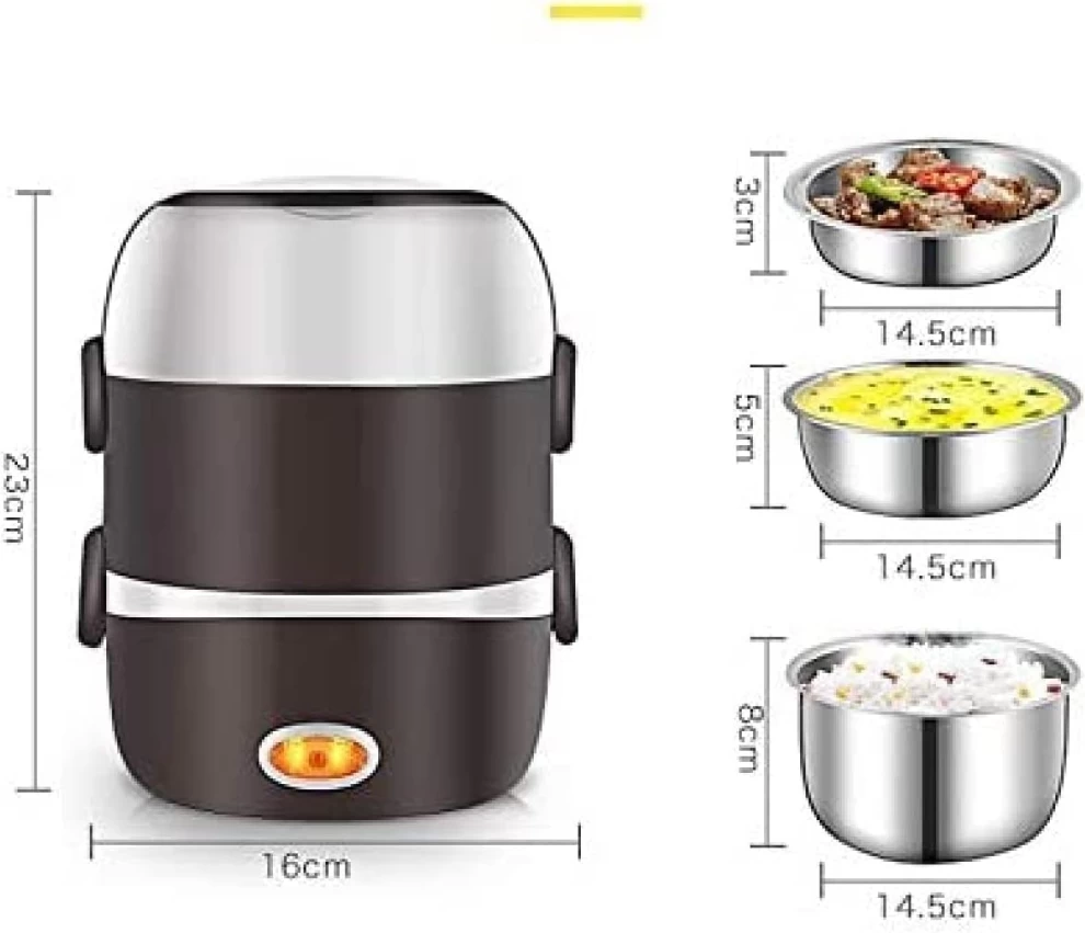🍱 صندوق غداء كهربائي 2 لتر – 3 طبقات للتسخين والبخار، محمول مع حافظة ستانلس ستيل
