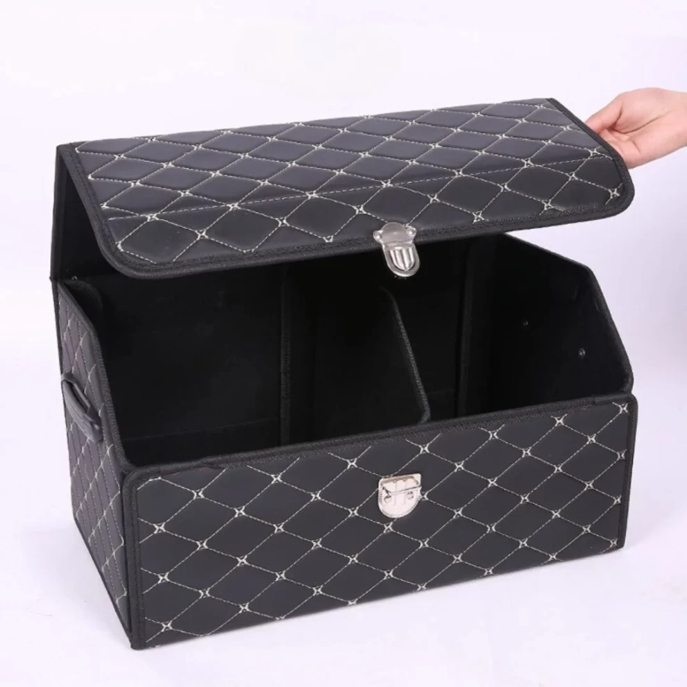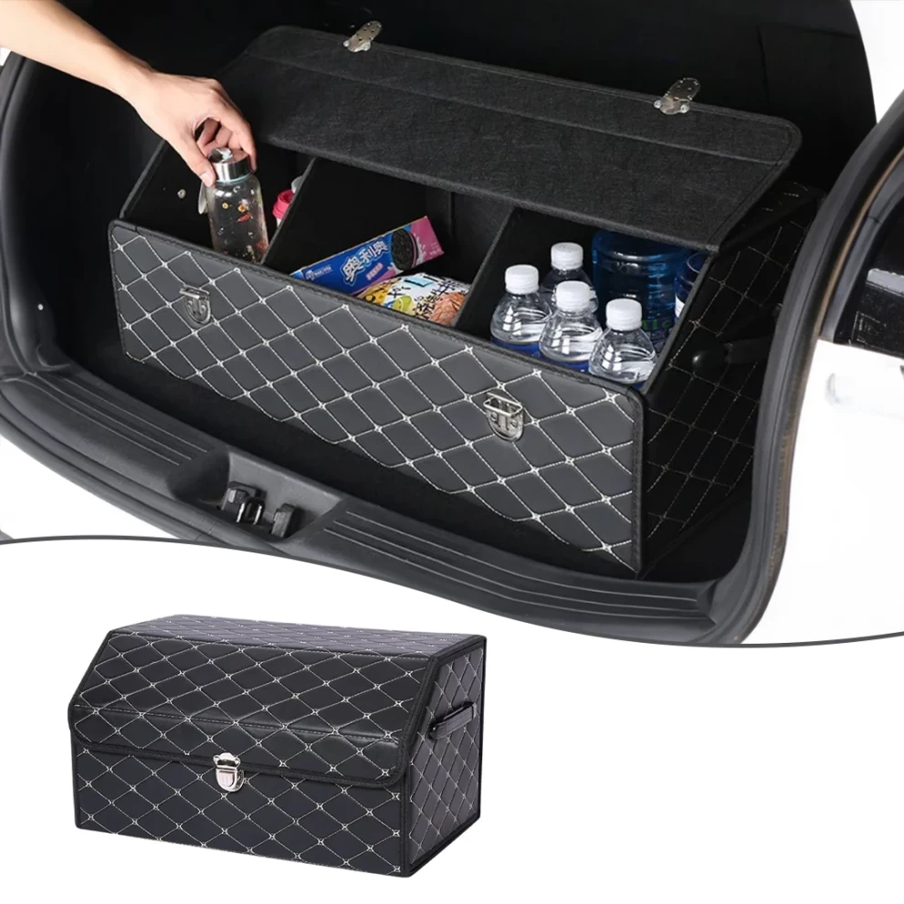 صندوق تخزين أنيق وعصري من الجلد للحفاظ على سيارتك نظيفة ومرتبة – مثالي للأدوات، المشتريات، وأكثر!