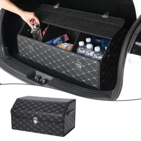 منظم صندوق السيارة الجلدي القابل للطي
