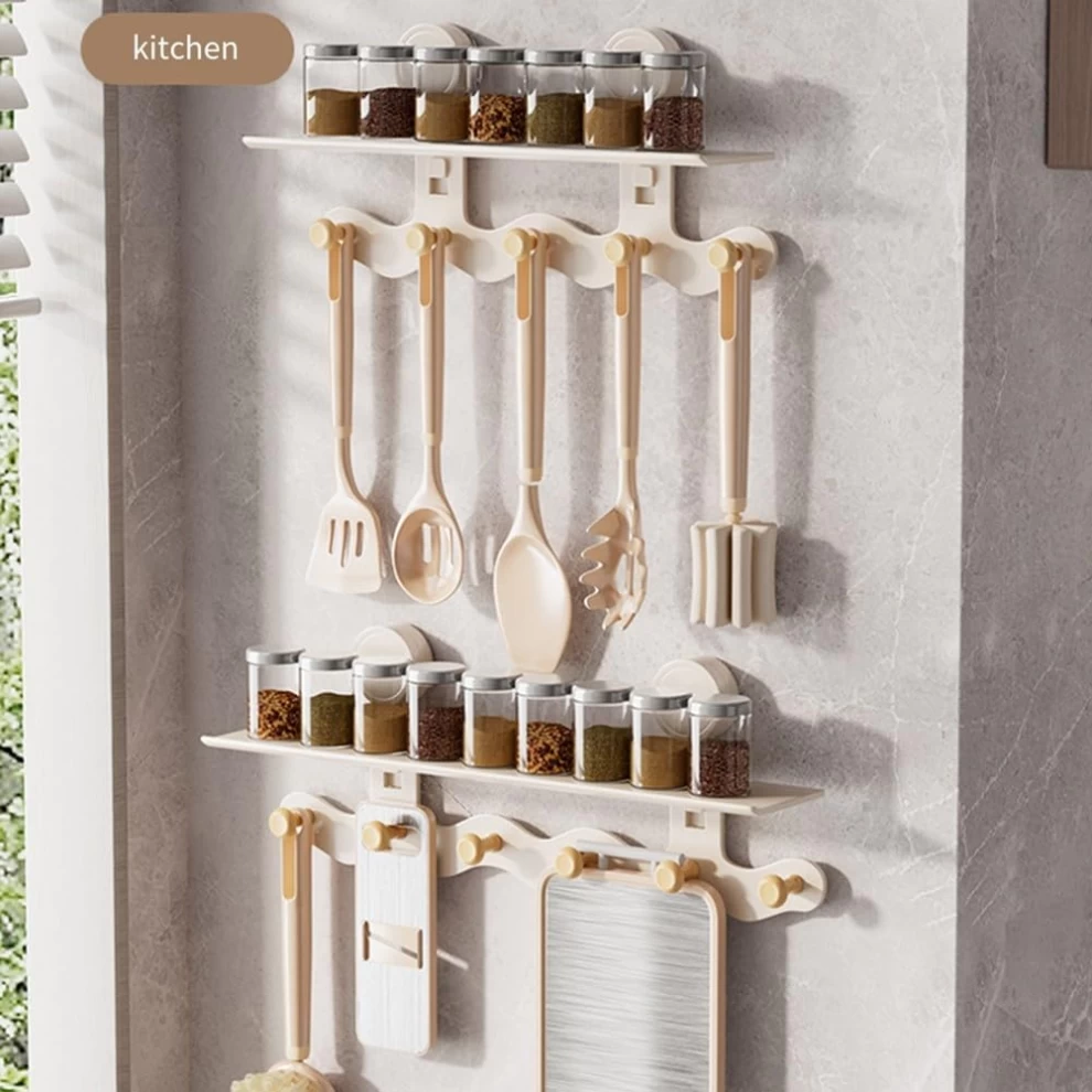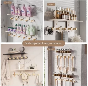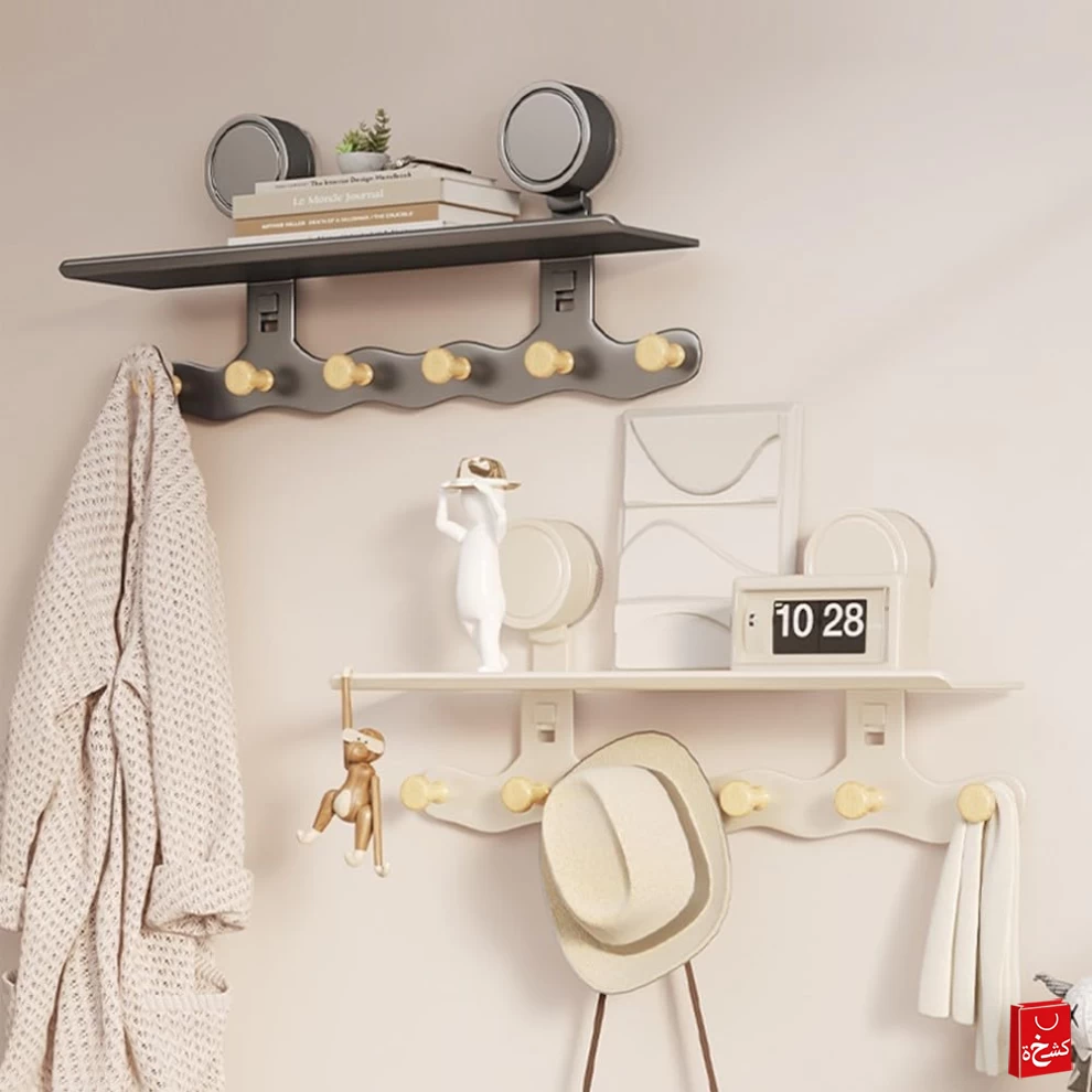 يحتوي على 6 خطافات متعددة الاستخدام لتخزين المناشف، أدوات الاستحمام، أدوات المطبخ أو المفاتيح بسهولة، وهو مثالي للمنازل والمكاتب وحتى الشقق المستأجرة.