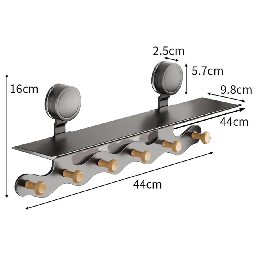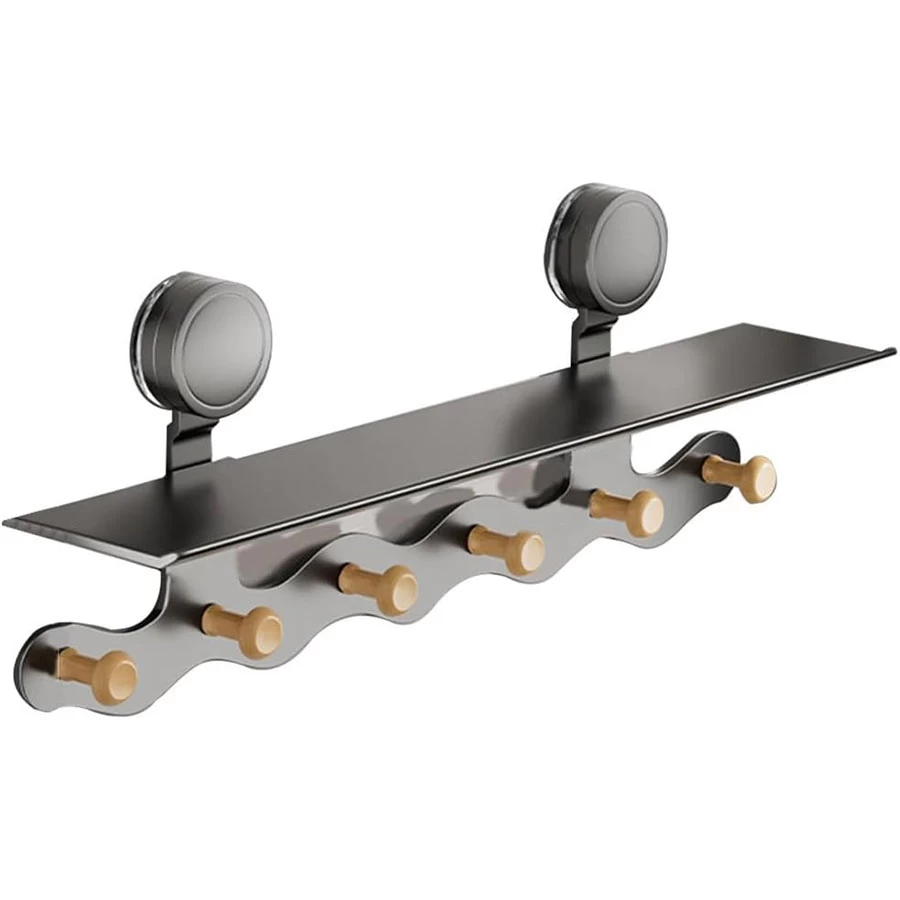 🚿 رف تخزين حمام هاسالر | شفط فراغي قوي | 6 خطافات | من الفولاذ الكربوني | تثبيت جداري بدون حفر