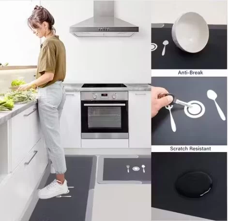 أضف لمسة من الراحة والأناقة لمطبخك أو غرفة الغسيل مع طقم سجادات ومشايات المطبخ المكون من قطعتين! 👣 تم تصميمه بتقنية مضادة للإجهاد لتقليل آلام القدم والظهر عند الوقوف لفترات طويلة.