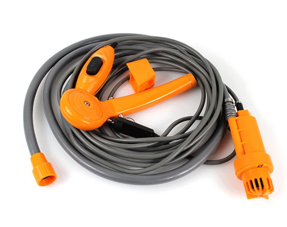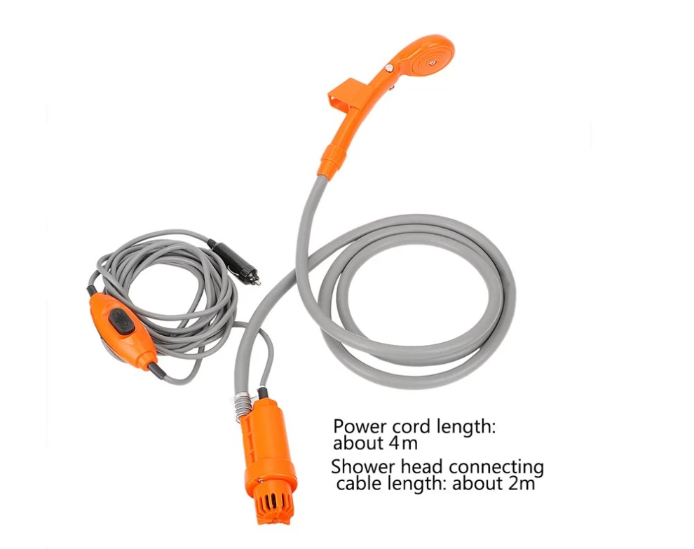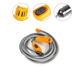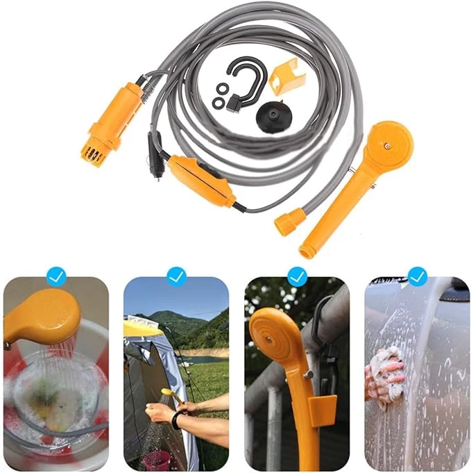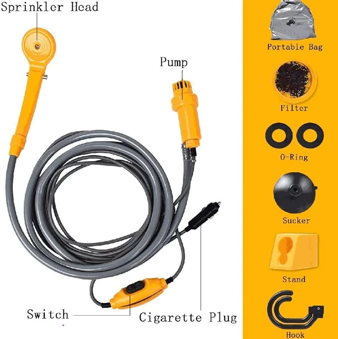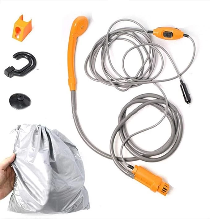 حافظ على انتعاشك ونظافتك في أي مكان مع الدش المتنقل للتخييم بقدرة 12 فولت، المثالي للرحلات، الشاطئ، أو التخييم. يتميز بتصميم خفيف وسهل التركيب مع تدفق ماء قوي، ويمكن توصيله بسهولة بمقبس السيارة 12 فولت أو باور بنك لتحويل أي مصدر ماء إلى دش خارجي متنقل.