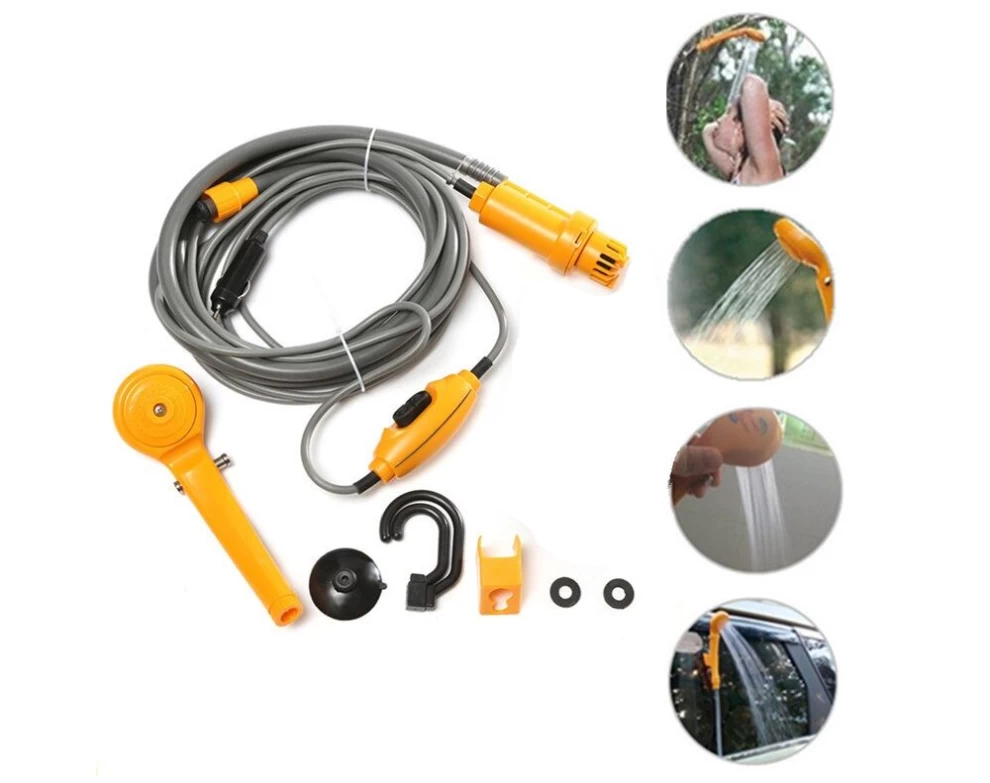 🚿 دش متنقل للتخييم – 12 فولت قابل لإعادة الشحن