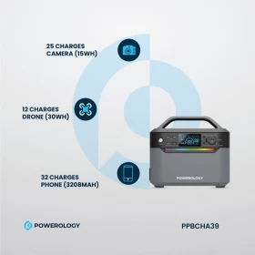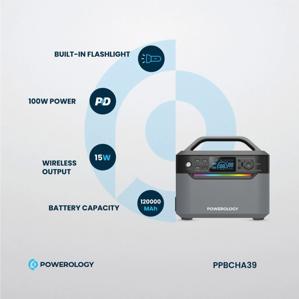 توفر محطة الطاقة المحمولة من باورولوجي سعة كبيرة 120,000mAh مع قدرة تشغيل 600W لتشغيل الأجهزة الضرورية سواء في المنزل أو أثناء الرحلات والكشتات أو عند انقطاع الكهرباء. تأتي مع مقبسَيْن AC لتشغيل جهازين في نفس الوقت.