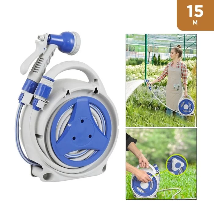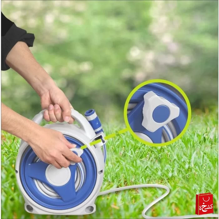 طقم بكرة خرطوم متعدد الاستخدامات بطول 15 متر – للحدائق والتنظيف