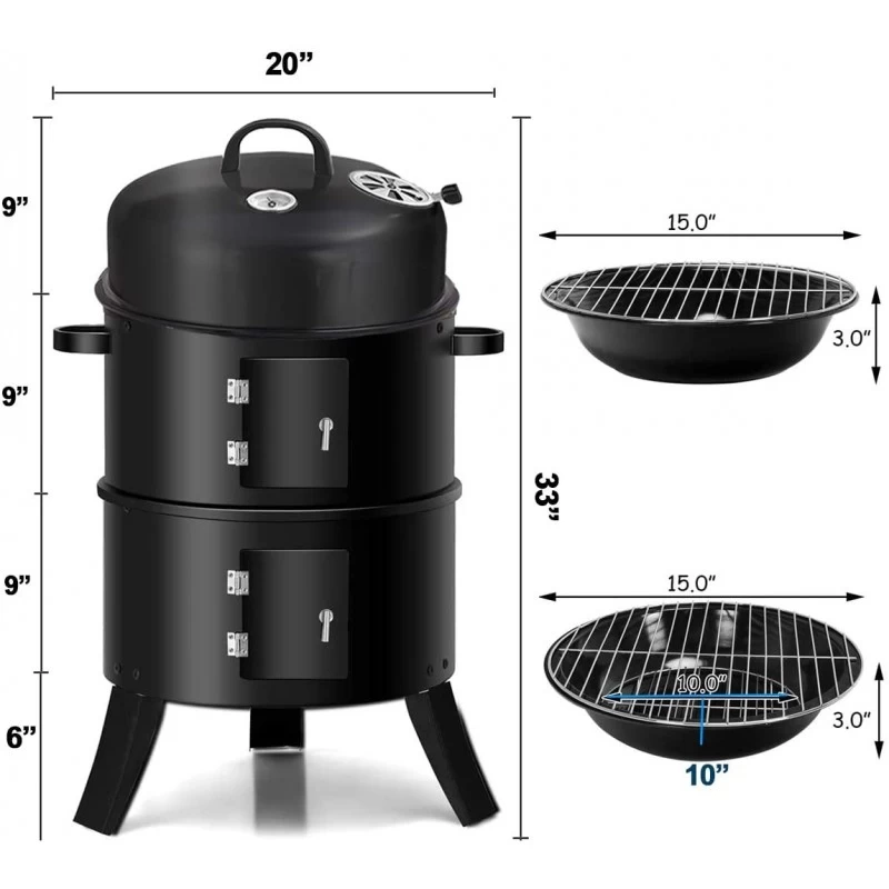 شواية فحم مدخنة متعدد الطبقات 3 في 1