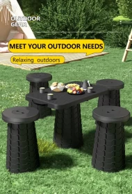 كرسي قابل للطي مزود بطاولة مدمجة، عملي جداً وسهل الاستخدام، يتميز بارتفاع قابل للتعديل وحجم صغير عند الطي، مما يجعله مثالياً للرحلات، التخييم، الصيد، الاستخدام المنزلي، والأنشطة الخارجية.