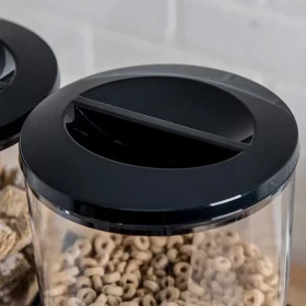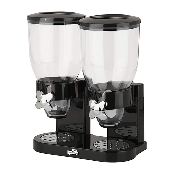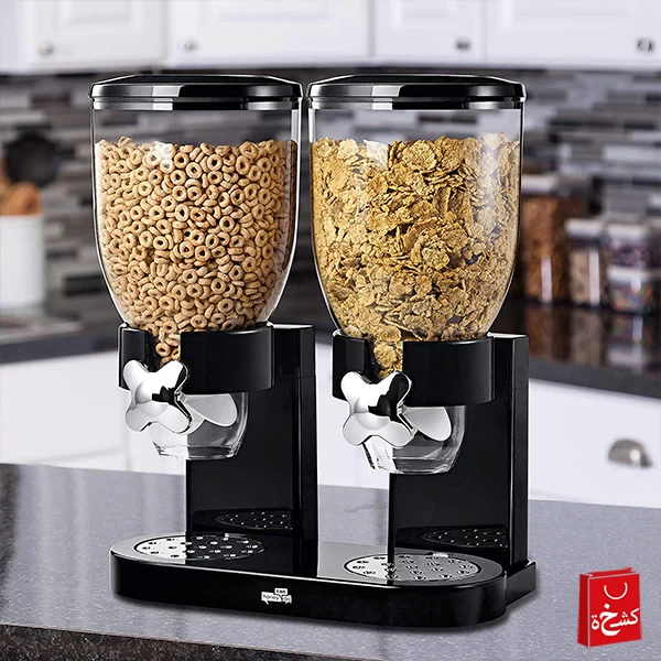 حافظ على حبوب الإفطار طازجة ومنظمة مع موزع الحبوب المزدوج، المصمم بحجرتين منفصلتين لتخزين أنواع مختلفة من الحبوب أو الأطعمة الجافة بطريقة نظيفة وسهلة.