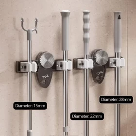 نظّم منزلك بسهولة مع حامل المكانس بكؤوس شفط، المصمم لتثبيت المكانس وأدوات التنظيف بشكل آمن دون الحاجة للحفر. يتميز بخطافات قابلة للتعديل ويوفر مساحة إضافية مع سهولة التركيب والإزالة.