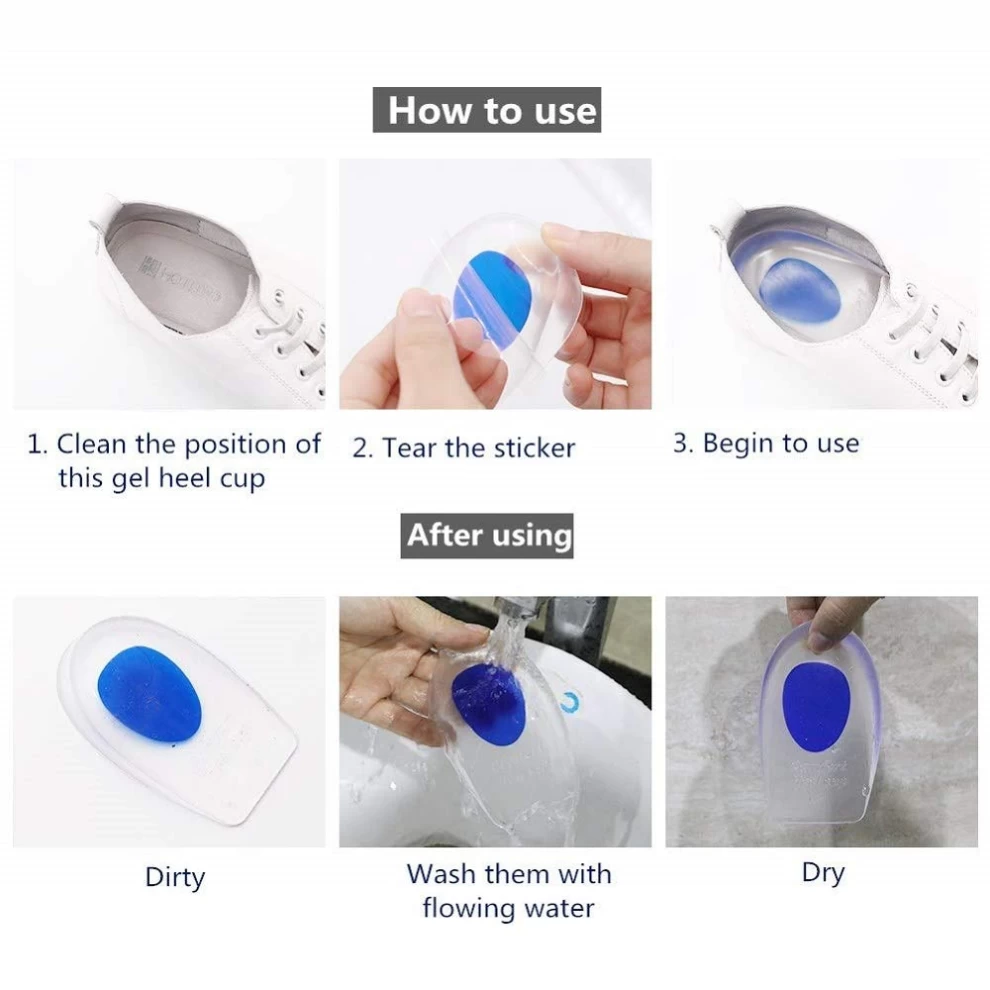 خفف آلام القدم مع وسائد الكعب المصنوعة من السيليكون الجل، المصممة خصيصًا لتقليل الضغط وامتصاص الصدمات. مثالية لمن يعانون من التهاب اللفافة الأخمصية، مسامير الكعب، آلام الكعب، وآلام وتر أخيل.