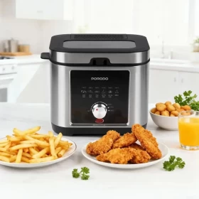استمتع بطهي مقرمش ولذيذ في المنزل مع قلاية Porodo Lifestyle العميقة بسعة 2.5 لتر، والمصممة لتوفير تحكم بدرجة الحرارة مع سلة غير لاصقة وهيكل متين من الستانلس ستيل لتوزيع حرارة مثالي.