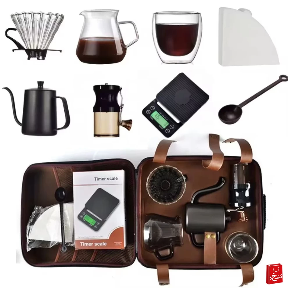 طقم تحضير قهوة بالتقطير 9 في 1 مع حقيبة تخزين – محمول