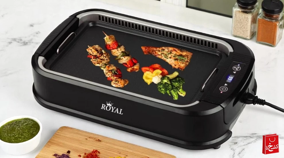 استمتع بتجربة الشواء بكل سهولة داخل المنزل مع الشواية الكهربائية الملكية Royal Electric Grill – الحل العصري لطهي اللحوم الطرية، والدجاج، والكباب، وحتى الخضروات بنكهات الشواء الأصيلة!