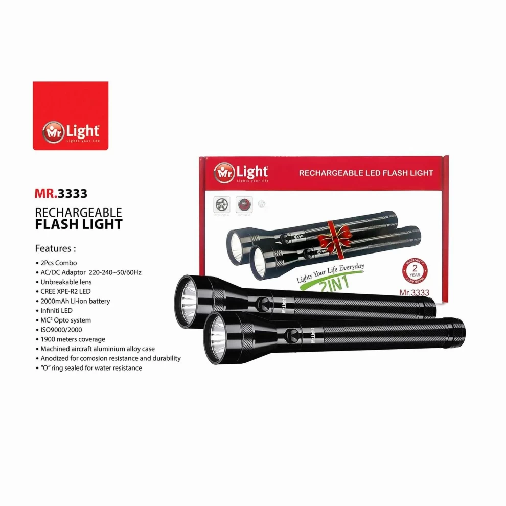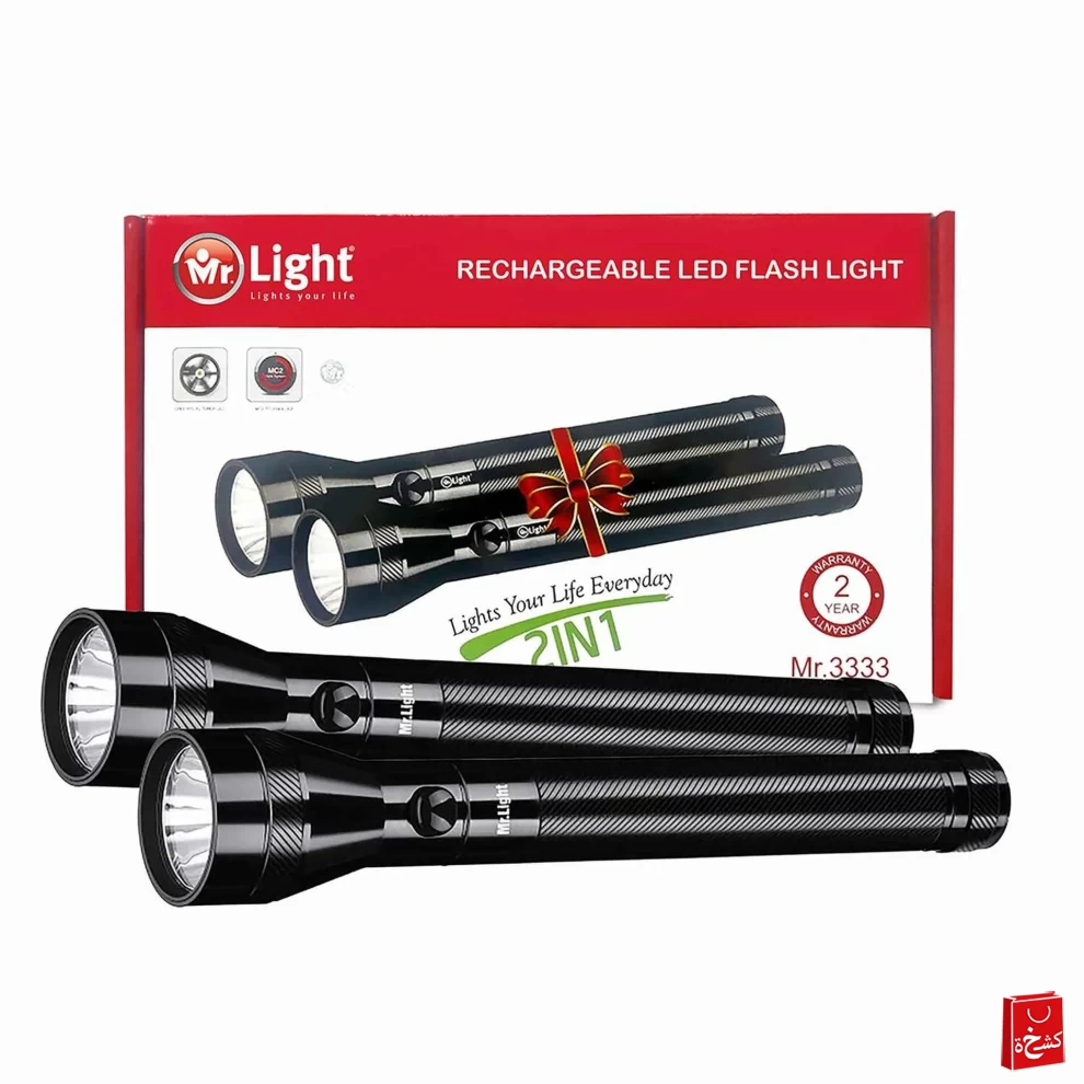 🔦⚡ كشاف Mr.Light MR.3333 LED قابل للشحن – طقم 2 قطعة