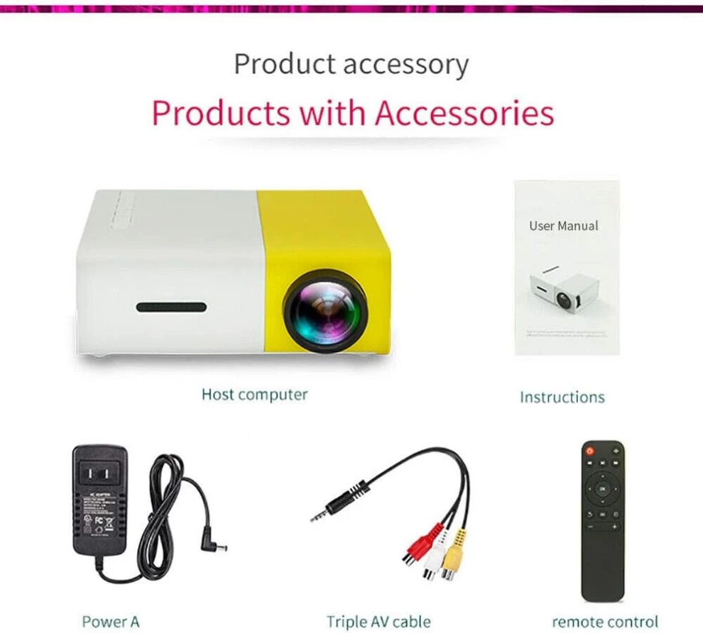 حوّل أي مساحة إلى سينما منزلية صغيرة مع هذا البروجكتر المحمول والمصغر! تصميمه خفيف وسهل الاستخدام، ويدعم منفذ HDMI لعرض المحتوى فورًا من أجهزتك المفضلة مثل اللابتوب، الأجهزة اللوحية، أو مشغلات الوسائط.