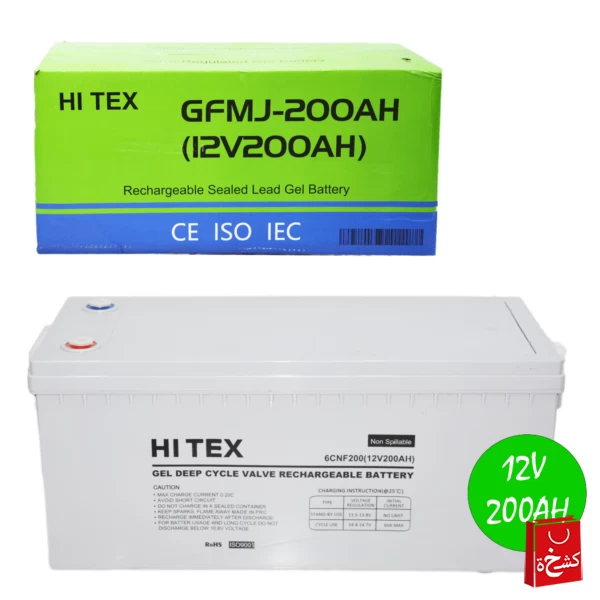 احصل على طاقة موثوقة لأنظمة الطاقة الشمسية مع بطارية HI TEX جل 200 أمبير 12 فولت. مصممة لتوفير أداء عميق (Deep Cycle) مع عمر طويل، وهي مثالية لأنظمة الطاقة الشمسية، والنسخ الاحتياطي، والاستخدام خارج الشبكة.