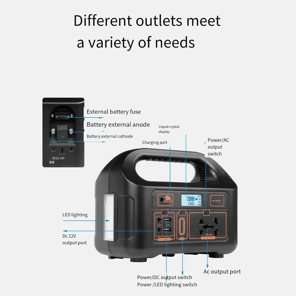 احصل على الطاقة في أي مكان مع محطة الطاقة المحمولة 150 واط، الحل المثالي لـ التخييم، السفر، والطوارئ. مزودة بـ مخرج 220V وبطارية مدمجة وإضاءة LED لتشغيل أجهزتك بسهولة في أي وقت.