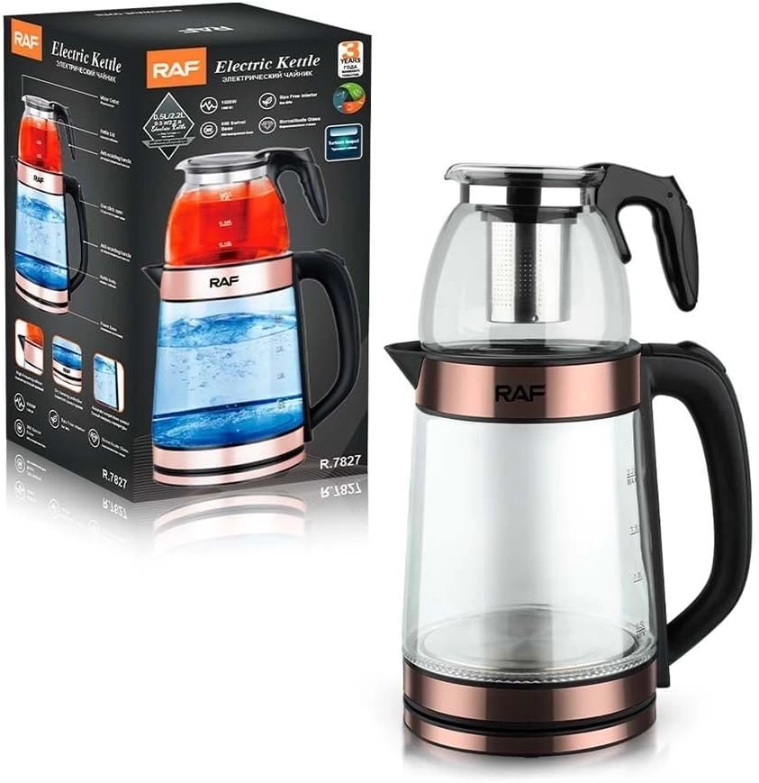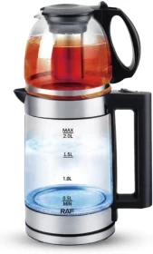 غلاية كهربائية زجاج RAF سعة 2 لتر – مع مصفاة شاي وعلامات حرارة