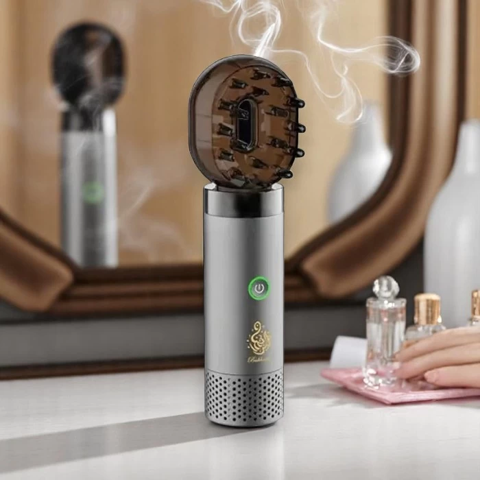 • 🌸 Bakhoor Diffuser – Releases fragrant smoke into your hair during combing
