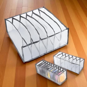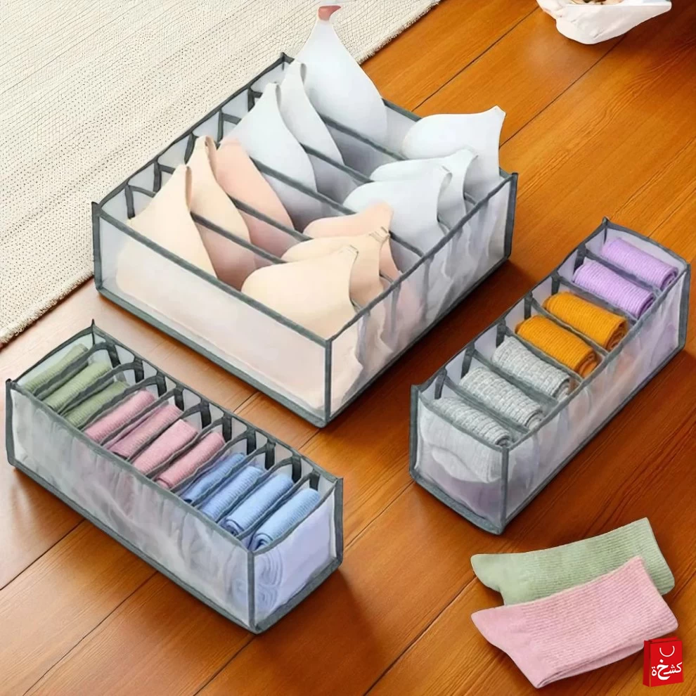 This 3-in-1 folding closet organizer set includes three durable nylon mesh boxes in different grid styles, designed to keep your clothes, underwear, and accessories neatly separated. Washable, breathable, and foldable, these organizers are perfect for wardrobes, drawers, and walk-in closets.