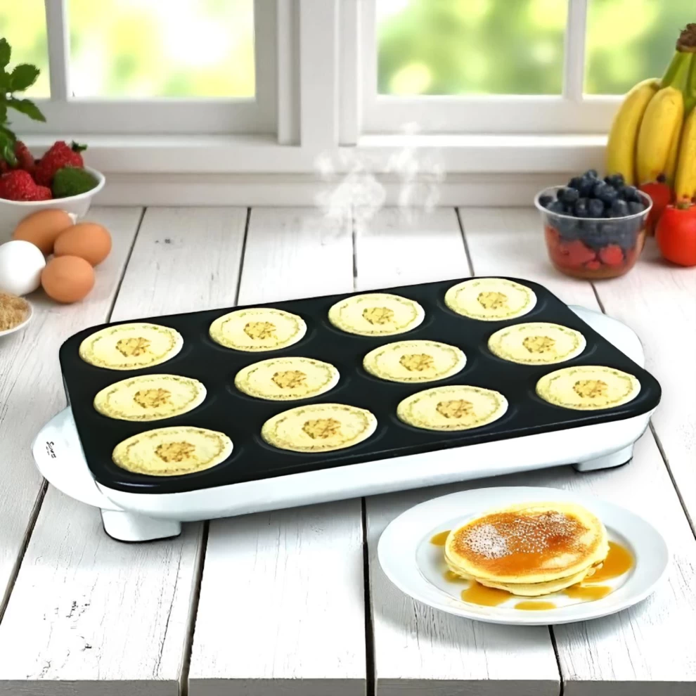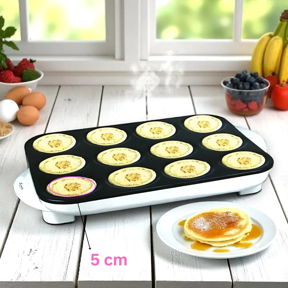 🍳 12-Mold Surface (5 cm each) – Cook up to 12 mini pancakes or omelets at once