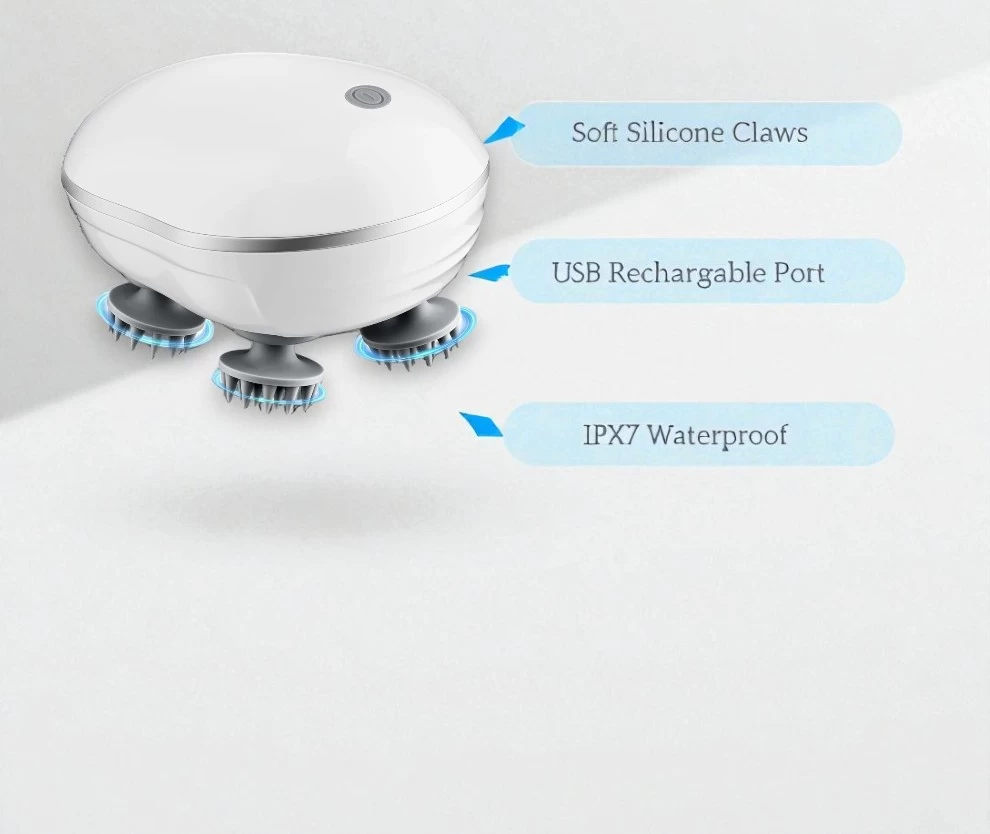 Say goodbye to stress and tension with this Electric Scalp Massager! Designed with 4 soft rotating massage claws, this device offers a relaxing head massage that stimulates circulation and promotes hair growth. 🌿 Perfect for home, travel, or spa-like moments anytime! 💆‍♂️🏠✈️