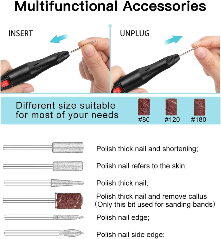✅ Multi-Function Nail Drill Kit – Includes all the essentials for filing, shaping, and polishing nails 💅