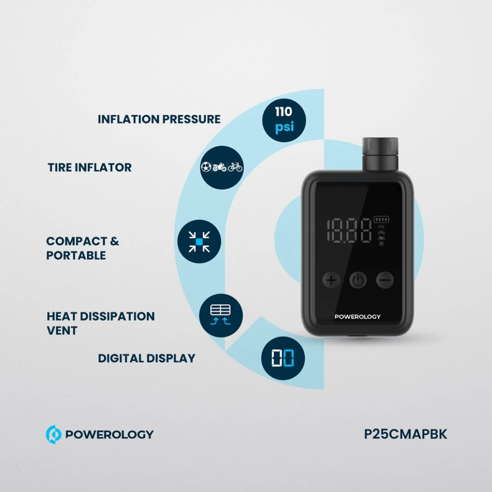 Powerology Super Compact Tire Inflator – Powerful Air in Your Pocket!