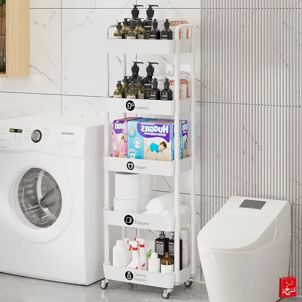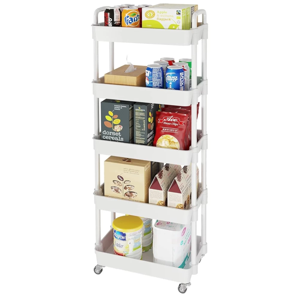 🧺 Spacious 5-Tier Design – Perfect for storing snacks, groceries, toiletries, books, toys, and more.
