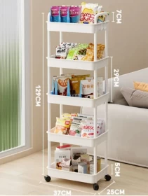 Organize your home in style with the 5-Tier Plastic Storage Rack with Wheels — the perfect space-saving solution for your kitchen, living room, office, or bathroom. Designed with durable plastic material, deep storage baskets, and smooth-rolling wheels, this rack makes it easy to store, move, and access your essentials effortlessly.