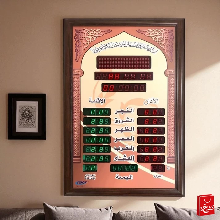Keep your prayers on time with the Double Row Islamic Azan Wall Clock AZ1066D-1, designed for homes, mosques, and offices. Featuring a double-row LED display, it clearly shows time, date, temperature, and prayer times, with automatic Azan calls for all 5 daily prayers. Perfect for Ramadan and everyday Islamic routines.