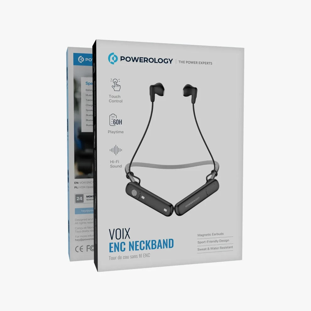 Enjoy premium audio on the go with the Powerology ENC Wireless Neckband Earphones. Designed for comfort and performance, these stylish neckband earphones deliver crystal-clear HiFi sound, environmental noise cancellation (ENC) for calls, and an IPX5 waterproof rating – making them perfect for daily use, workouts, and travel.